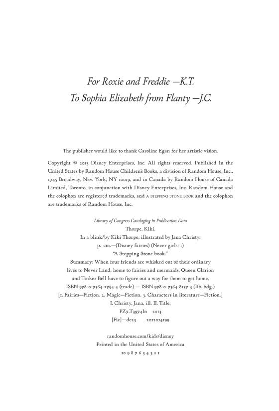 KIKI THORPE spent much of her childhood reading, daydreaming, and searching for fairies in the forests of Idaho—pastimes that were good training for writing children's books. She is the author of several books for young readers, including the New York Times bestseller In a Blink, the first book in the Never Girls series. She lives with her husband, Greg, and their two children in San Francisco.