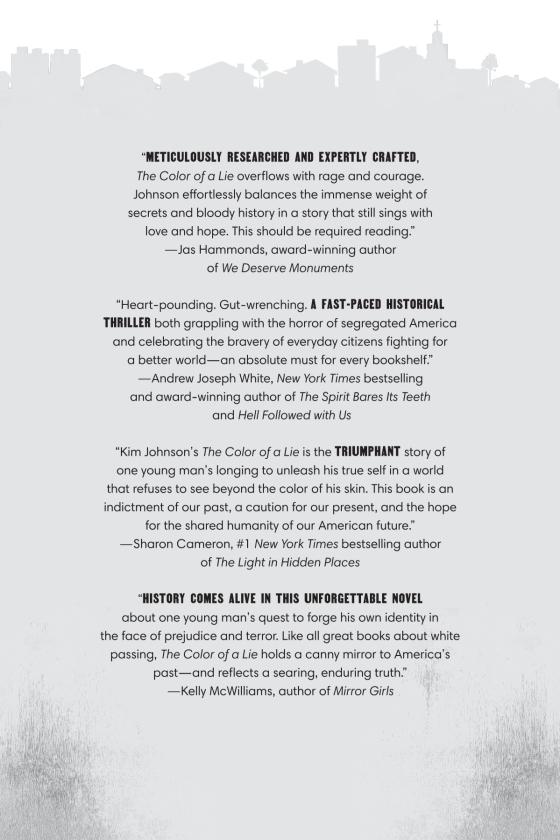 History comes alive in this unforgettable novel about one young man's quest to forge his own identity in the face of prejudice and terror. Like all great books about white passing, THE COLOR OF A LIE holds a canny mirror to America's past--and reflects a searing, enduring truth."
