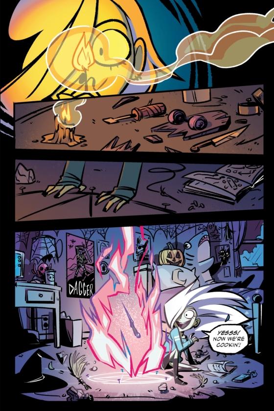 this world. They’re from the Hallowlands, a monstrous realm, which they can only leave as the year creeps toward Halloween. This year, Gwen is determined to flex her magical skills. Armed with her first-ever grimoire, she’s hoping her friends will finally see that she has what it takes to leave boring suburbia behind and join them in the Hallowlands.