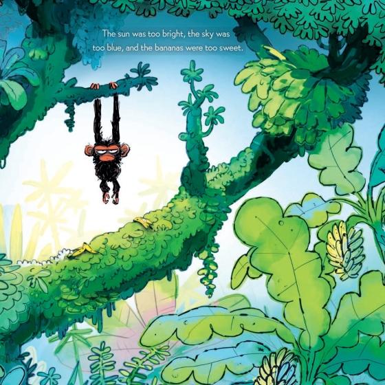 Jim the chimpanzee is in a terrible mood for no good reason. His friends can’t understand it – how can he be in a bad mood when it’s SUCH a beautiful day? They encourage him not to hunch, but to smile and do things that make THEM happy. But Jim can’t take all the advice. Could it be that he just needs a day to feel grumpy?