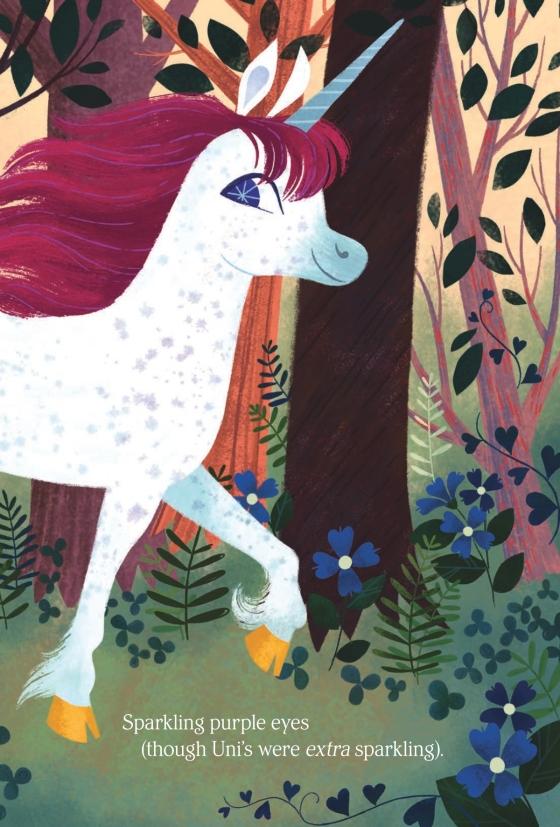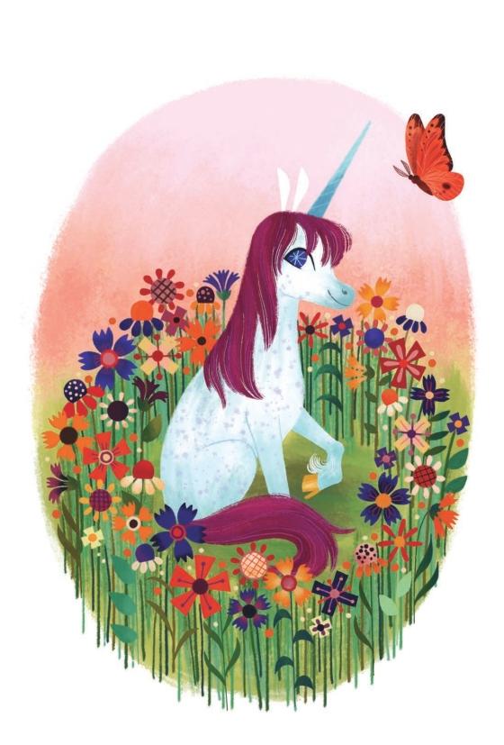 While the spirit of Mary Blair, vintage Golden Books, and 1960s animation influences many contemporary picture books, Barrager (Twelve Dancing Princesses) embraces it fully in this collaboration with Rosenthal (Exclamation Mark). Like her fellow unicorns, Uni is magical and magnificent; she has a luxuriant magenta mane, golden hooves, and violet eyes that don’t just sparkle—they basically are sparkles. Where Uni differs from her peers is in her belief that little girls are real, that “a strong smart wonderful magical little girl” is out there waiting to be her best friend. In a series of single-page vignettes, Barrager shows Uni and a blonde, blue eyed human girl dashing through fields of flowers, healing forest animals with Uni’s magical horn, and sailing past birds and clouds as they slide down a rainbow. The throwback illustration style, absence of tech (save for a nightlight and record player), and emphasis on clinging to beliefs that the world dismisses as fantasy combine to create a story that encourages kids to stay kids as long as possible. Ages 3–7.Author’s agent: Amy Rennert, the Amy Rennert Agency. Illustrator’s agent: Vicki Willden-Lebrecht, the Bright Group. (Sept.)