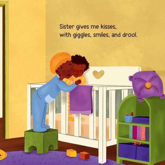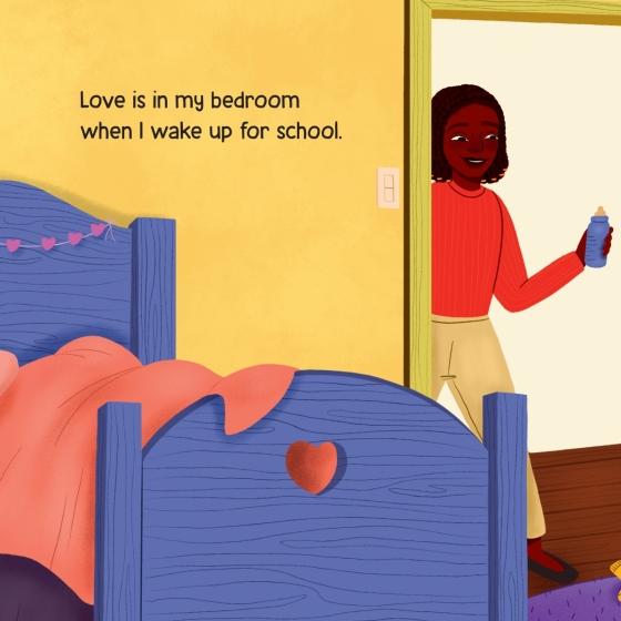 This first book in the Brown Baby Parade series celebrates Black and brown babies and delivers a universal message of love, letting all babies know that they are cherished from head to toe.Love is in the bathroom when Daddy combs my hair.He picks out my Afro and clips in bows with care. Love is in the kitchen. We all sit down to eat—waffles, milk, and sausage, and yummy syrup sweet. A little girl observes the ways that love is shown and shared throughout her day. From Sister’s kisses when she wakes to eating breakfast with her family and playing with friends at school, love is all around.