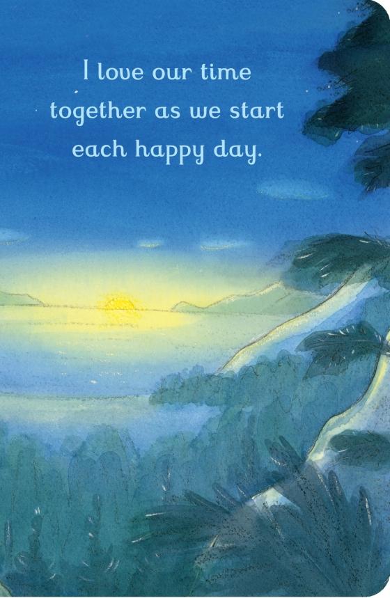 Show your child just how strong your love is every minute of the day! Features a "To" and "From" personalization page, making this an ideal gift for baby showers, birthdays, and new parents. Now in a tall padded board book format! The sun rises, and a bear and cub begin their day together. They splash in the water, climb mountains, watch the colorful lights in the shimmering sky, and play with friends. They show their love for each other by touching noses, chasing each other, and, of course, hugging and snuggling before bed.