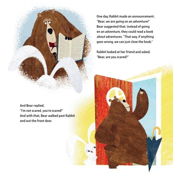 When you're a bear who is easily scared, it's hard to have friends. Fortunately, Bear has one: Rabbit, who is very brave. One day, Rabbit urges Bear to face his fears and embark on an adventure together. However, things don't entirely go as planned, and the two friends learn the true meaning of bravery.