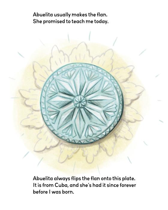 Anita can’t wait to make flan with her grandmother for the first time as a special treat for her abuelo’s birthday. Abuelita has arthritis, so she needs Anita’s help in the kitchen. She’s so excited to get started that she drops the very special plate that Abuelita always uses for the flan. Worried, Anita tries to keep the broken plate a secret as she and Abuelita begin making the treat. While they’re cooking together, Abuelita shares stories of other flan recipes in the family and the people who made them special. Anita finally comes clean about the plate and is surprised when, instead of being mad, Abuelita reminds her that people are more important than things and that Abuelo will love the flan because it was made with love—even if it’s served on a different plate. Written in a mix of English and Spanish, the story emphasizes the importance of family customs and the connections between generations. Expressive illustrations create a sense of emotion throughout. Anita’s grandparents are from Cuba and have light brown skin; Anita has lighter skin and dark brown hair.