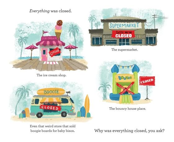His dad, Brown Bison, encourages him to be patient and wait, and his mom, Burgundy Bison, tries to explain that sometimes you want something that you really don’t need. But all Blue Bison can do is whine and wallow. Could little sister Bubblegum Bison have the solution?