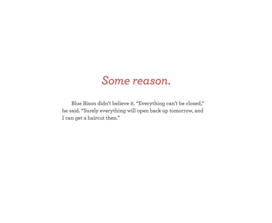 Blue Bison tries his best to be patient in this humorous picture book from the #1 New York Times bestselling illustrator Pete Oswald.Blue Bison prides himself on always looking clean and neat. But he has a growing problem--his hair. With the barber shops and just about everywhere else closed, all Blue Bison can do is ram his ramming rock in frustration. Meanwhile, his hair keeps growing.