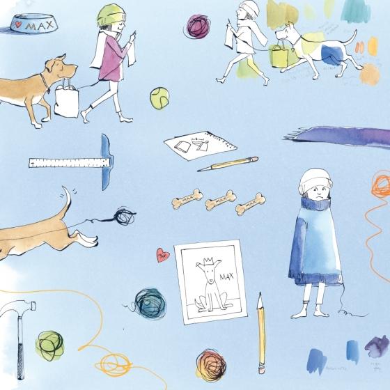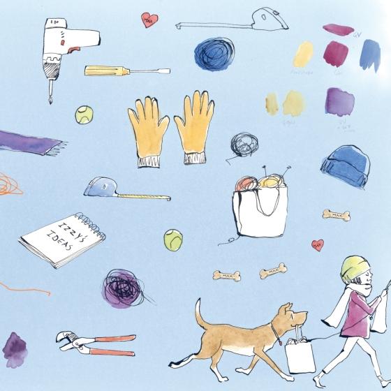 A funny and creative look at how to turn a problem into a solution.Max is a big dog who lives with Izzy, a medium-sized girl, who has big ideas. Izzy can build anything—a birdhouse, a wooden swing, a tent, and even a catapult that really works. So when Izzy takes up knitting, she expects to be able to knit anything. But trying to make a sweater seems impossible.
