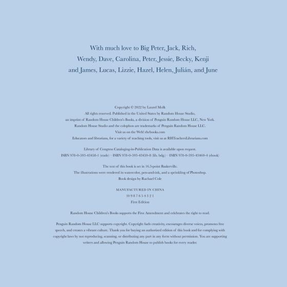 Laurel Molk’s career started by selling her drawings to her neighbors--a penny a drawing, or six for a nickel. Later she went on to pursue drawing at RISD. Laurel now directs her talents toward illustrating and writing children's books. She has published several books and has exhibited in shows at the Society of Illustrators. Like Izzy, Laurel has yet to knit a perfect sweater. Laurel Molk lives outside of Boston with her family and a very large dog named Calvin.