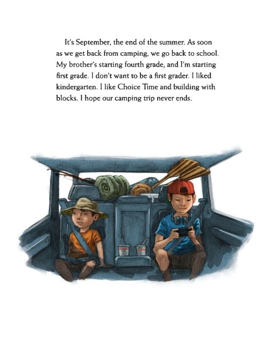 But this year is different. This year, the boy is going into first grade, and his mother is encouraging him to do things on his own, just like his older brother. And the most different thing of all . . . this year, a tiger comes to the woods.