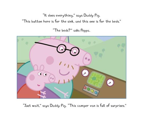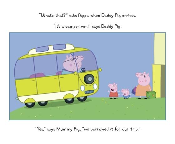 Pack up the sleeping bags for a camping trip with Peppa, complete with a camper van full of surprises.Peppa Pig and her brother, George, are very excited. They’re going on vacation! This time Daddy Pig has borrowed a camper van that has its own sink and beds and a roof that lifts up. It also turns into a boat they can take on the river. Even more fun are the nature activities Peppa enjoys with her family, like visiting swimming ducks, spotting wildlife on their walks, building a campfire, and pitching Daddy’s old tent. But best of all are the shooting stars they see in the night sky as they’re falling asleep!