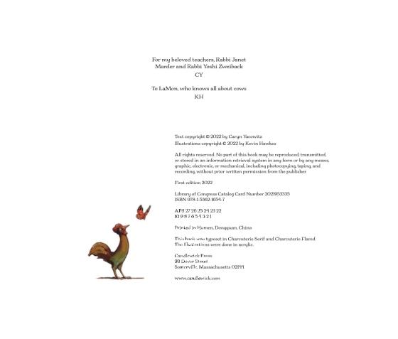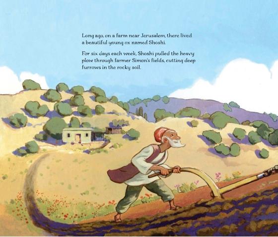 The virtues of taking a break—and of being thankful—are extolled in the gentle story of a stubborn ox, an impatient farmer, and a day of rest.Long ago, in the hills near Jerusalem, lived a young ox. For six days each week, she and her owner would toil in the fields, and on the seventh day both would rest. Then it came to be that this young ox was sold. For six days, she toiled in her new owner’s fields, and on the seventh day the farmer brought out the yoke and plow, expecting to spend another day hard at work. But Shoshi the ox had a different idea. In a warm, friendly narrative and vivid, humorous art, author Caryn Yacowitz and illustrator Kevin Hawkes bring to life a tale drawn from the ancient Jewish stories known as the Midrash, a story as relevant today as it was long ago. It’s a tale of encountering other cultures and learning from them, of paying attention to the world around you—sun, breeze, animals, people—and above all, of learning to slow down and take a break.