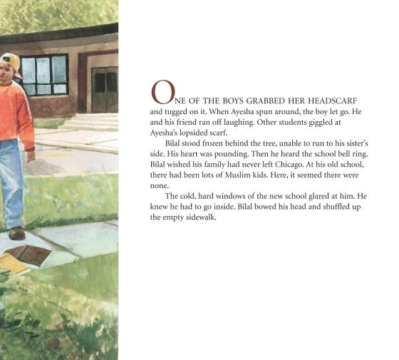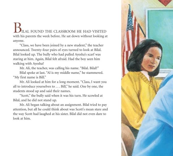 A young boy wrestles with his Muslim identify until a compassionate teacher helps him to understand more about his heritage. After a family move, Bilal and his sister Ayesha attend a new school where they find out that they may be the only Muslim students there. Bilal sees his sister bullied on their first day, so he worries about being teased himself, thinking it might be best if his classmates didn't know that he is Muslim. Maybe if he tells kids his name is Bill, rather than Bilal, then they will eave him alone. But when Bilal's teacher Mr. Ali, who is also Muslim, sees how Bilal is struggling. He gives Bilal a book about the first person to give the call to prayer during the time of the Prophet Muhammad. That person was another Bilal: Bilal Ibn Rabah. What Bilal learns from the book forms the compelling story of a young boy grappling with his identity.