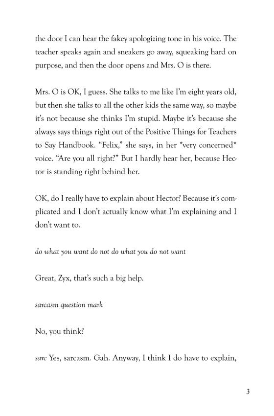 “If you think a boy with an alien inside of him doesn’t have a whole lot to teach you about life and love and the ways we are connected to each other, then you’ve never met Felix Yz. Felix would be