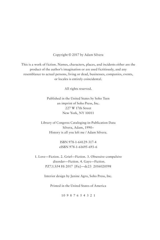 History Is All You Left Me overflows with tenderness and heartache. Even when its hero is screwing up royally, maybe especially then, Silvera's humanity and compassion carve out a space where it's not the falling that's important, it's how you pick yourself back up. There isn't a teenager alive who won't find their heart described perfectly on these pages.”