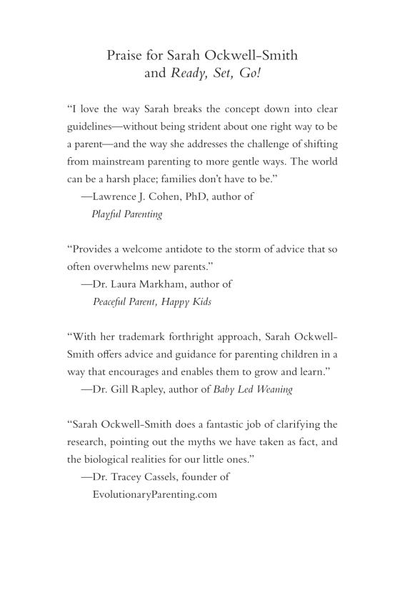 Ready, Set, Go! “I love the way Sarah breaks the concept down into clear guidelines -- without being strident about one right way to be a parent -- and the way she addresses the challenge of shifting from mainstream parenting to more gentle ways. The world can be a harsh place; families don't have to be."