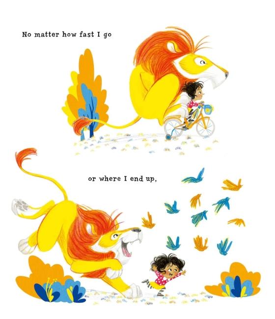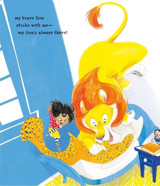 This charming book about courage and caring stars a little girl accompanied by an enormous lion, whose very presence gives her strength to do hard things—that is, until the lion himself becomes a scaredy-cat. . . . Fun and relatable.