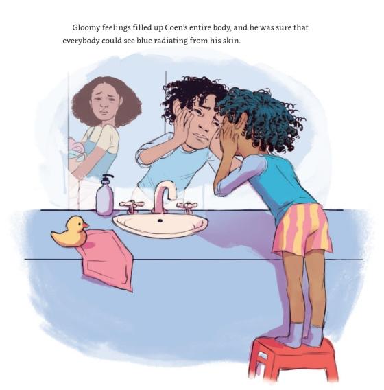 His family thinks they know how to cheer him up. His dad wants to go outside and play, Mom tells her funniest joke, and his little sister shares her favorite teddy. Nothing helps. But one by one, they get quiet and begin to listen. After some time, space, and reassurance, Coen is able to show
