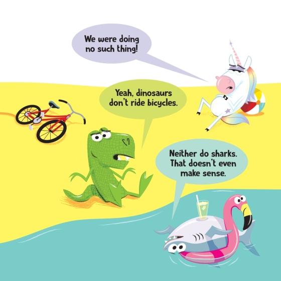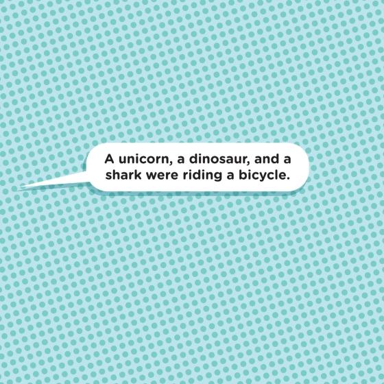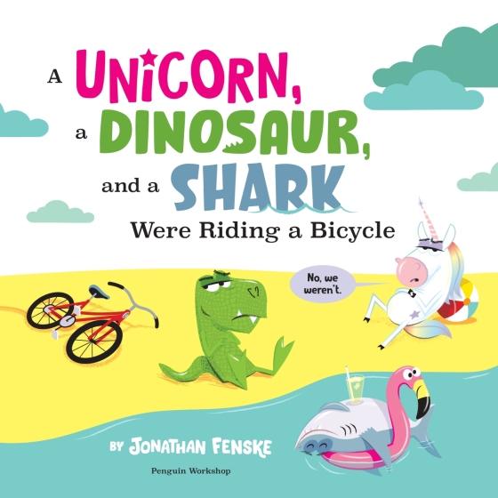 A Unicorn, a Dinosaur, and a Shark Walk Into a Book that will leave young readers laughing.