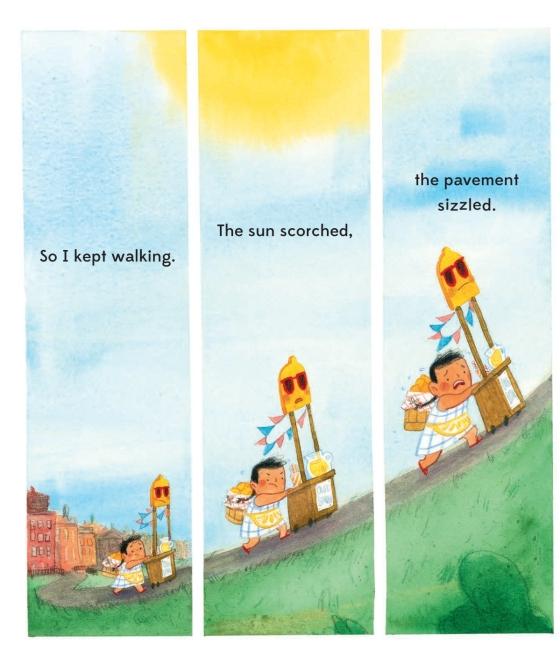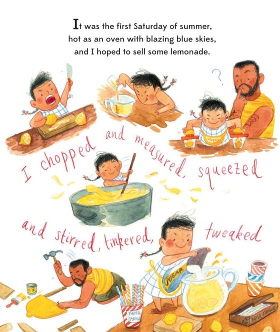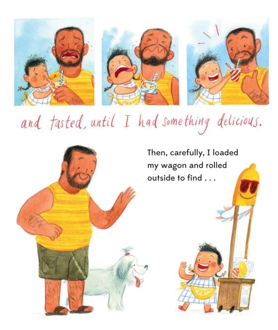Kirkus"With pigtails bouncing and wide smile grinning (and then grimacing), our young entrepreneur brings a frantic energy to the scene, pushing and then chasing her homemade stand (topped with a bespectacled lemon with its own delightful expressions) through scenes vibrant with urban chaos and then pastoral sunniness." —