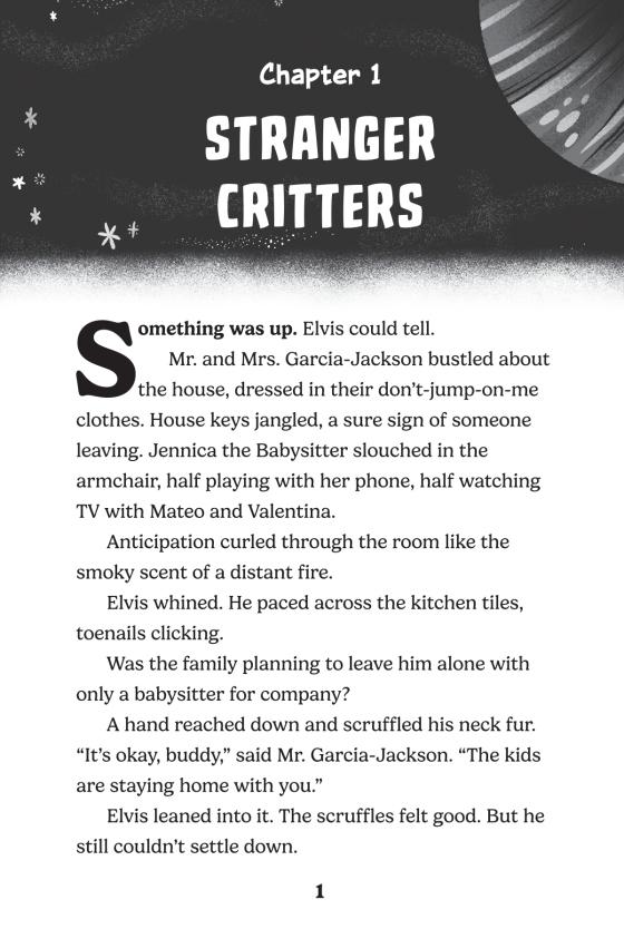 Blast off into space and come along for an intergalactic mystery—with plenty of pizza—in this first book of the illustrated chapter book series, Outer Space Mystery Pizza Club!It’s another ordinary Friday night in the suburbs for the Garcia-Jackson family: Mateo and Valentina’s favorite show is on TV. Mateo’s best friend, Booker, is over. And their babysitter, Jennica, is definitely keeping an eye on them and not playing with her phone.