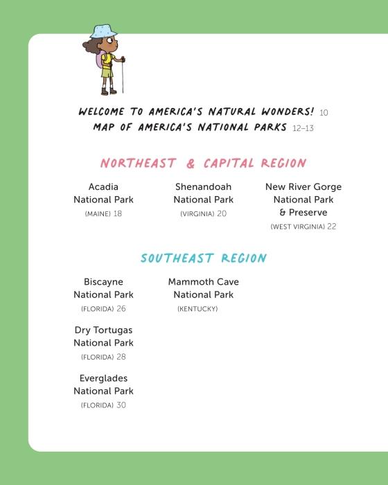 TAKE A TRIP THROUGH THE US with a map identifying each park; along with learning the location of the parks, kids will learn geography, too!