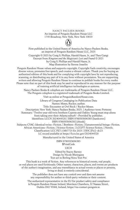 RUCKER MOSES is the pen name of writing team Craig S. Phillips, Harold Hayes, Jr., and Theo Gangi. Together, they write far-out adventures that happen right next door. Harold and Craig both hail from Atlanta and teamed up to tell stories at the University of Georgia. As a writing duo, they’ve been nominated for three Emmys for writing in a children’s program and have written for TV shows based on books by R. L. Stine and Christopher Pike. They also make virtual reality experiences and own a production company named SunnyBoy Entertainment. Theo, a novelist and writing teacher, has authored several acclaimed novels and stories, and has worked on shows for Netflix and Disney+. He directs the MFA program in creative writing at St. Francis College in downtown Brooklyn. When not telling stories together, they spend time chasing their kids from one adventure to the next.