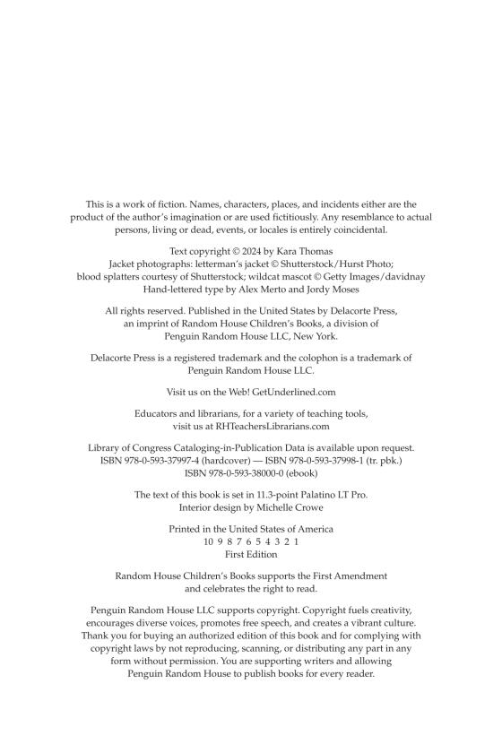 Kara Thomas is an unsolved mystery enthusiast who dreams of one day solving a cold case. She lives on Long Island with her husband, son, and rescue cat. She is the author of The Darkest Corners, Little Monsters, The Cheerleaders, That Weekend, and The Champions, as well as the adult thriller Out of the Ashes.