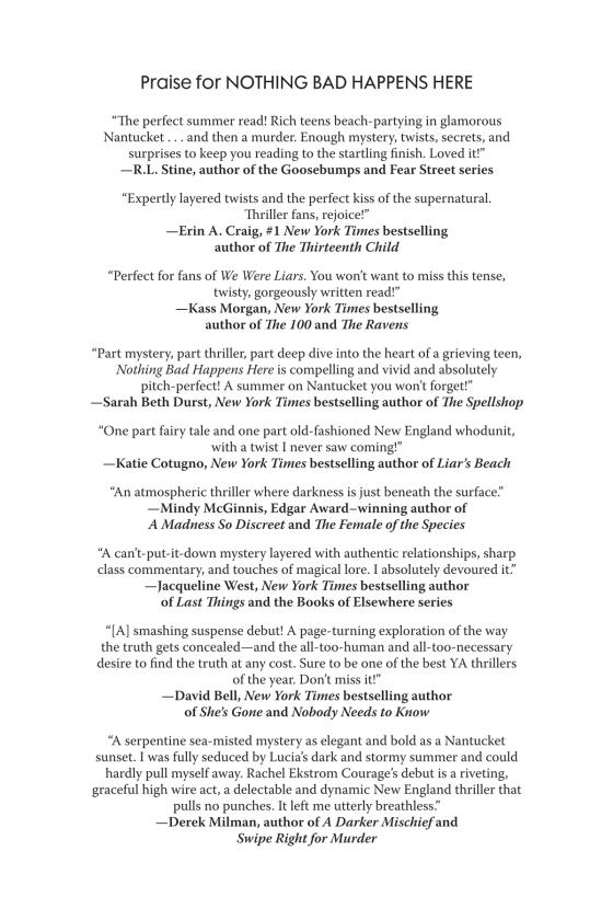 “Part mystery, part thriller, part deep dive into the heart of a grieving teen, Nothing Bad Happens Here is