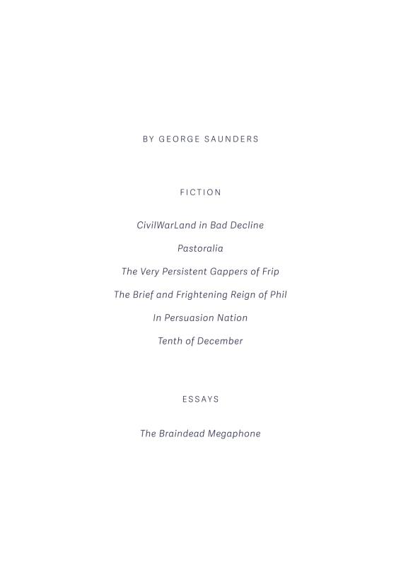 —Entertainment Weekly“The loving selflessness that [George Saunders] advises and the interconnectedness that he recognizes couldn’t be purer or simpler—or more challenging.”