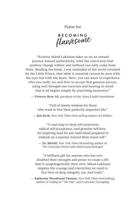 “Kristina Mänd-Lakhani takes us on an inward journey toward authenticity, with the conviction that positive change within and without can only come from there. Reading her book, I was reminded of the secret revealed by the Little Prince, that what is essential cannot be seen with the eyes but with the heart. Here, you can learn to experience who you really are and how to accept that genuine person, using well thought-out exercises and bearing in mind that it all begins simply by practising awareness.”