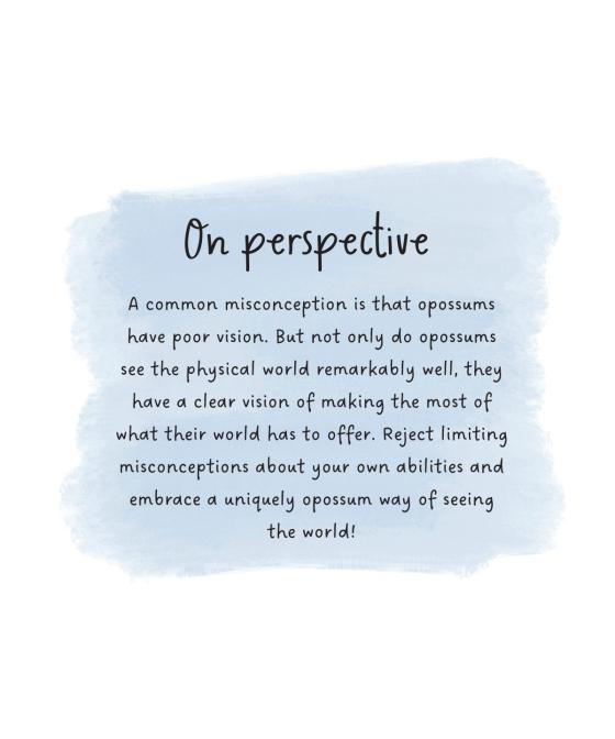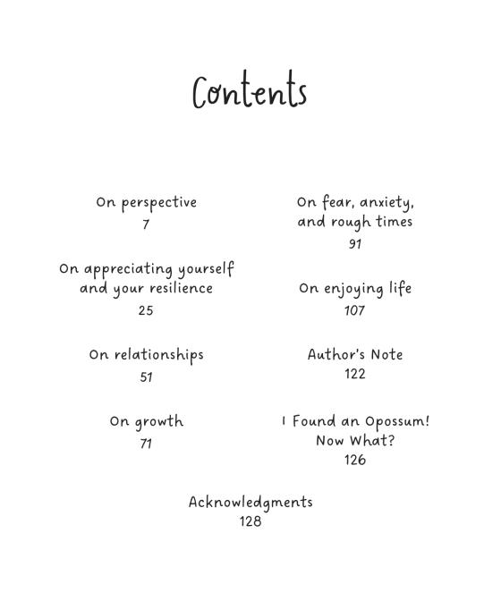 Featuring 70 watercolor illustrations, this totally adorable gift of a book offers wisdom and insight from a delightfully unexpected source: the opossum.Learn to live your life the opossum way with unique advice like: