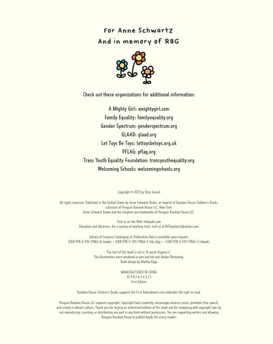 Simple, accessible, and direct, this picture book is perfect for kids and parents or teachers to read together, opening the door to conversations about gender stereotypes and everyone's right to be their true selves. Is it okay for boys to cry? Can girls be strong? Should girls and boys be given different toys to play with and different clothes to wear? Should we all feel free to love whoever we choose to love? In this incredibly kid-friendly and easy-to-grasp picture book, author-illustrator Elise Gravel and transgender collaborator Mykaell Blais raise these questions and others relating to gender roles, acceptance, and stereotyping.