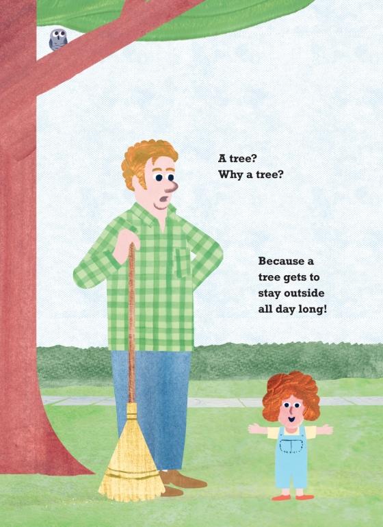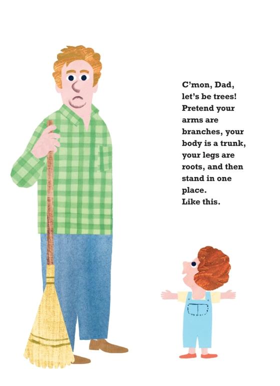 A dad and daughter take pretending to an adorable extreme in this funny book that's perfect for Father's Day.It’s easy to be a tree. Just pretend your arms are branches, your body is a trunk, and your legs are roots. Don’t move, even if a bird makes a nest on your head, a squirrel hides an acorn in your pocket, and a spider builds a web under your arm. It’s OK: Trees don’t mind those things. Or so says the little girl who persuades her father to be a tree