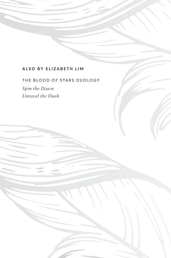 ELIZABETH LIM grew up in the San Francisco Bay Area, where she was raised on a hearty diet of fairy tales, myths, and songs. Before becoming an author, Elizabeth was a professional film and video game composer, and she still tends to come up with her best book ideas when writing near a piano. An alumna of Harvard College and the Juilliard School, she now lives in New York with her husband and her daughters.