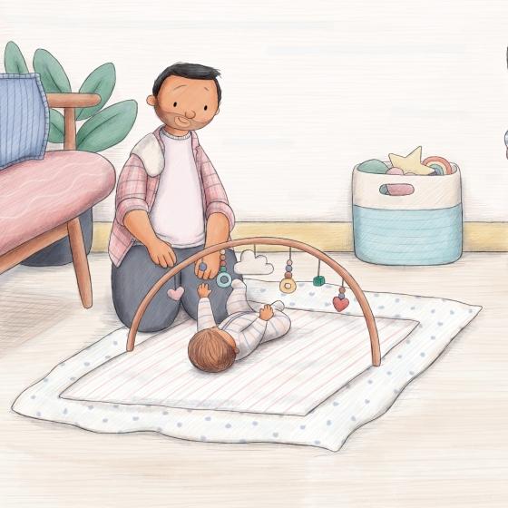 A new dad gets ready to share the love of reading with his baby for the first time.It's baby's first story time and a new dad is excited to read to his child. He's also a little nervous. Which book should he choose? And what if it doesn't settle the baby to sleep? After bath time, picking out pj's, and the perfect swaddle, it's time to cuddle up to read together. And begins the special journey that only starts when a book is opened. Father and baby are transported to the soothing world of their story, sharing the special love of reading together for the first time. Filled with both tenderness and wonder,