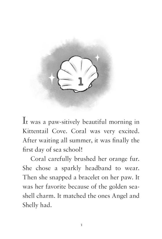Get totally smitten with mermaid kittens in the first book in this new chapter book series! It’s purrfect for fans of Magic Kitten and the Fairy Animals of Misty Wood series. Coral, Shelly, and Angel are best friends. They love exploring their home in Kittentail Cove. On the first day of sea school, their teacher asks everyone to bring in something special to share with the class. Shelly and Angel can’t wait to visit Tortoiseshell Reef to find an extra-special treasure. But the reef is all the way on the edge of the cove and Coral is scared to swim that far away from home. Can this scaredy-cat learn to be brave?
