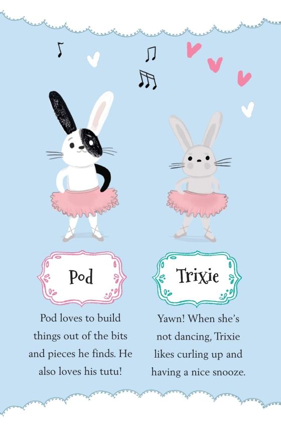 Peek behind the curtain and find the Ballet Bunnies in this new full-color chapter book series featuring the most darling dancers you will ever meet!Miss Luisa's School of Dance is a magical place. There are dancers and music. . . and bunnies that talk and do ballet! No one knows the bunnies are there. Then, Millie arrives. She's new to ballet class and doesn't know all the moves. But when all the other dancers are gone, she discovers the Ballet Bunnies! They can help Millie find her dancing feet--so long as she can keep the Ballet Bunnies a secret!