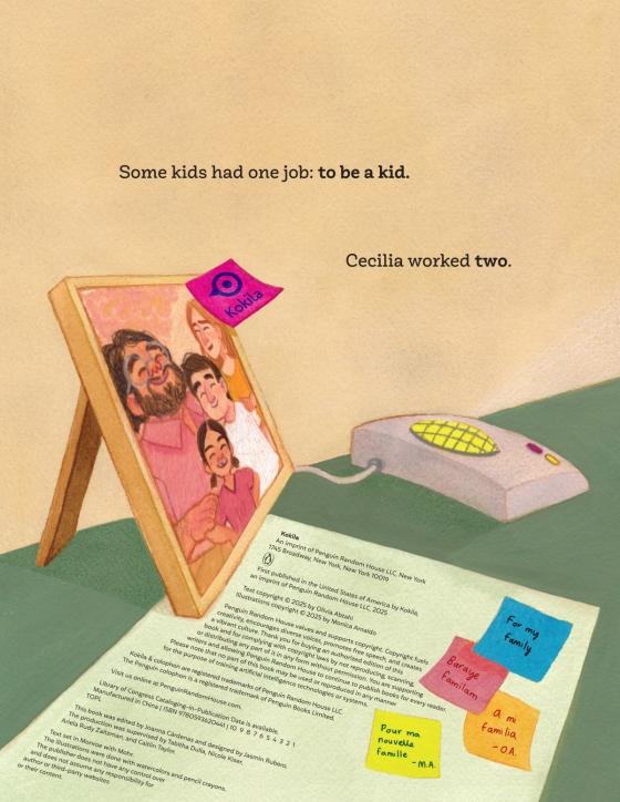 A sharp and heartfelt picture book about a young soccer-loving girl who’s an interpreter for her Spanish-speaking parents.Some kids have one job: to be a kid! Cecilia has two. When she isn't on the soccer field scoring goals, she's accompanying her parents to all kinds of grown-up places, like the DMV, the accountant's office, and the auto shop. She helps them translate from Spanish to English and from English to Spanish. It’s an important job, and it can even be fun. It’s also hard work.