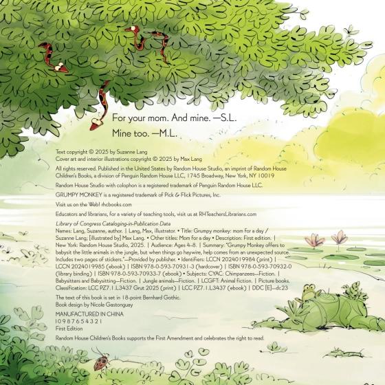 Max Lang has illustrated over 20 books including all of the books in the Grumpy Monkey series. When he is not making books he makes films. He has co-directed several animated films including The Snail and the Whale, Zog, Room on the Broom, and The Gruffalo. He has received three BAFTAs, two Emmys, two Oscar nominations, and many other honors for his film work. In his spare time, he tries to make his kids laugh with dad jokes, and when he inevitably fails, he takes his dogs for a walk.