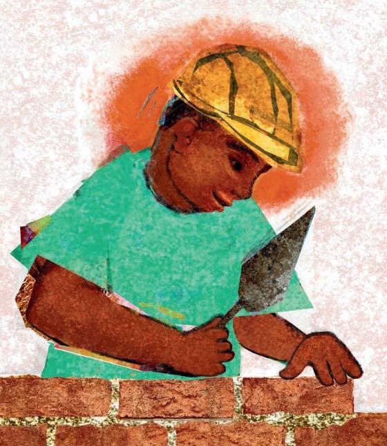Are Your Stars Like My Stars?) are composed partly of photographed bricks—a note explains that even Papi and Luis are made up of areas of brick images. Sheffield underscores the way children model themselves on the important adults in their lives in this loving, familial portrait of a strong father whose labor is honored.”—