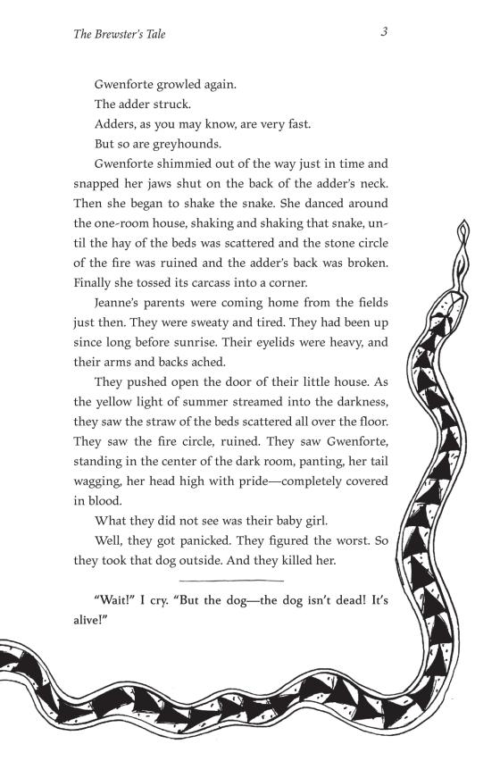 heartstopping moment when characters readers have come to care about find themselves on a collision course with one of the great woodchippers of history—the Inquisition, agents of which are in hot pursuit of three underdog characters (and one actual dog) from the very start…This book