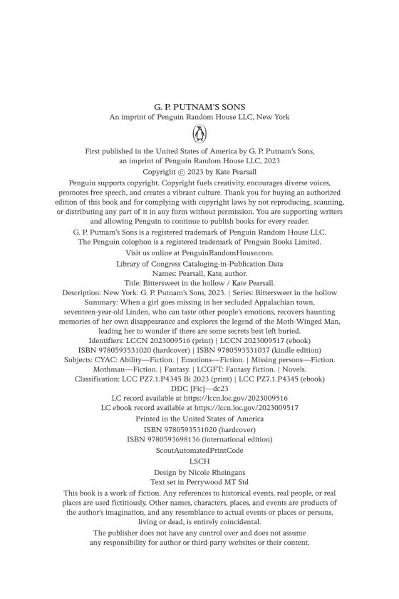 As tempers boil over, Linden enlists the help of her sisters to find what’s hiding in the forest . . . before it finds her. But as she starts digging for truth—about the Moth-Winged Man rumored to haunt the Hollow, about her bitter rift with Cole, and even about her family—she must question if some secrets are best left buried.