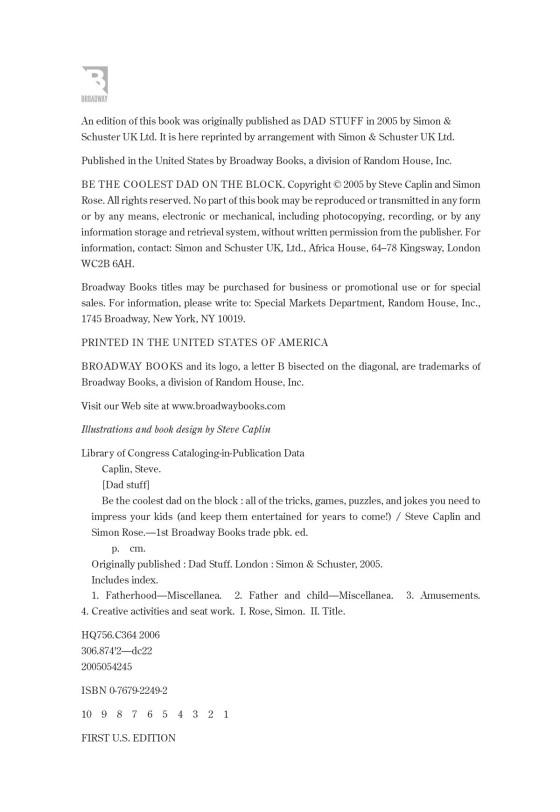 Be the Coolest Dad on the Block is a cornucopia of practical parenting advice, like how to skip stones or teach a kid to ride a bike. It has answers to the pesky questions kids love, such as “Why is the sky blue?” or “Where do babies come from?” And it can help dads entertain large groups of kids with slapstick gags (“burp the alphabet”) or cool tricks (“the hole in the head”).