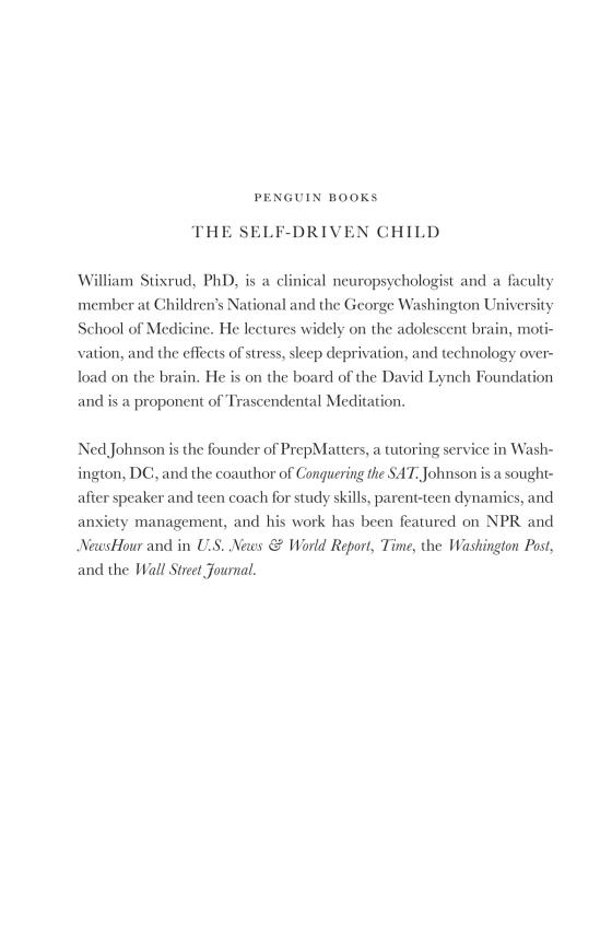 Booklist "Stixrud and Johnson provide compassionate, well-supported suggestions and strategies for parents to help their kids deal with ever-more-competitive academics and extracurriculars. The authors make a highly persuasive case for how parents can help their children segue from feeling stressed and powerless to feeling loved, trusted, and supported." —