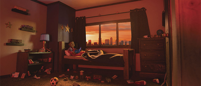 I really enjoyed making the scene where our main character is reading in his bedroom before it becomes the sleeper car because it tells us so much about his personality. I wanted to create a relatable character with rich interests by scattering dozens of detail-oriented hints about who he is and what he likes to do throughout the room.