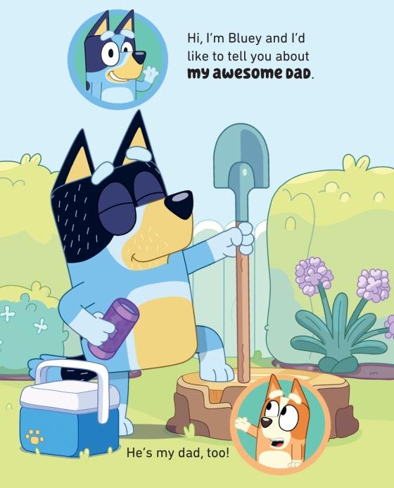 Bluey and Bingo share why their dad is awesome in this hilarious and heartwarming picture book, featuring everyone's favorite Heelers.Based on the on the wildly successful animated series, Bluey, as seen on Disney+. Everyone loves Bandit, but especially Bluey and Bingo! He's always making up funny games, playing Daddy Robot, and taking them on exciting adventures. This is the perfect book to celebrate your dad on Father's Day, or any day, and share what makes him awesome!