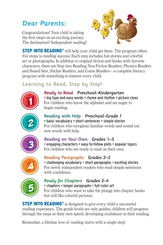 Step 2 readers use basic vocabulary and short sentences to tell simple stories. They are for children who recognize familiar words and can sound out new words with help.
